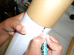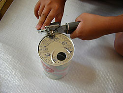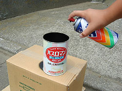 フードは缶の上下部を缶キリで 切り取り筒状に・・・ |