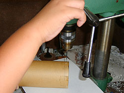 鏡筒のレンズ側とドロチューブ側に穴あけ作業 |