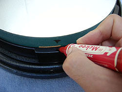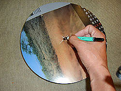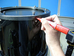 直径25cmの台紙の中央に穴を開け 主鏡にマジックでセンターマーク入れ |