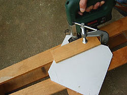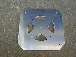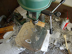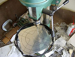 穴の位置の精度を良くする為、先ずセンターにボルトを止めセルとアルミ共に穴あけの作業 |