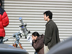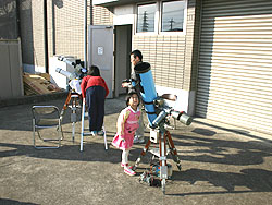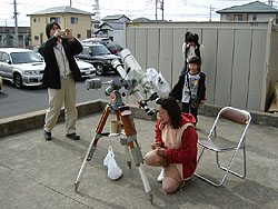 外では 昼間の観望会で 太陽のプロミネンス・太陽黒点・月 を見ていただきました。 |