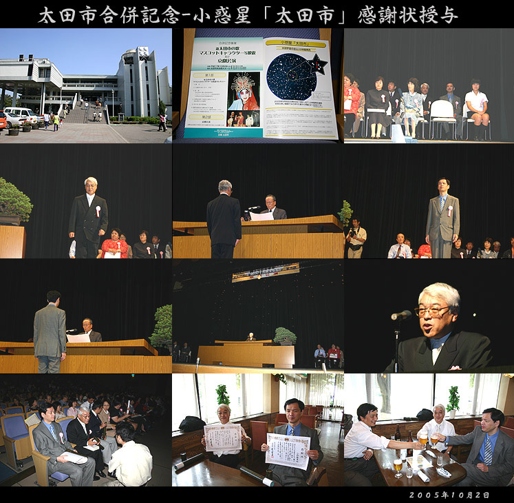 「新太田市の歌」 「マスコットキャラクター」 「合併記念星命名者感謝状」 の授賞式で、