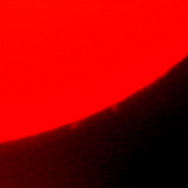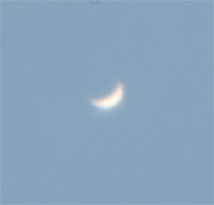 金星は3日月の形 ・ 太陽表面に黒点は一つも無く、 小さいプロミネンスがかろうじて有った2006年でした。 |