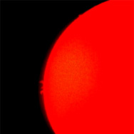 金星は小さく丸に近い形 ・ 1日目の太陽表面に黒点は1つ、2日目は自転の関係で見えなくなり、 プロミネンスは2日とも見えていた2007年でした。 |