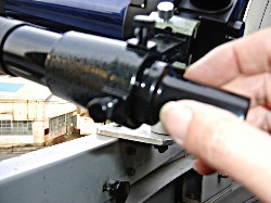 接眼部から懐中電灯の光を当て蓄光テープを発光させると