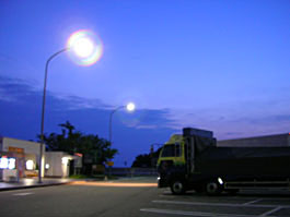 | やっと アルコール の給油です(^^; | AM 3:50 ごろ 北東の空は 快晴です(^^) | 入善PAの喫煙スペースに、、、 |
